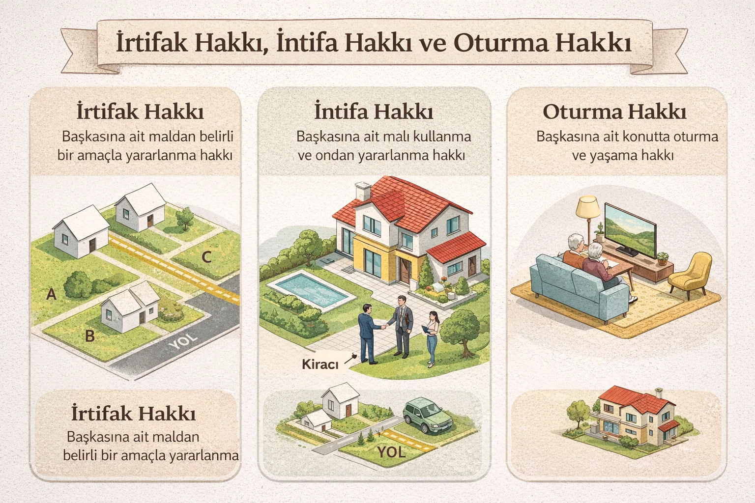 İrtifak Hakkı, İntifa Hakkı ve Oturma (Sükna) Hakkının Hukuki Niteliği ve Uygulamadaki Yeri1. Giriş Taşınmaz mülkiyeti, modern hukuk sistemlerinde mutlak bir hak olarak tanımlanmakla birlikte, bu mutlaklık çeşitli ayni haklarla sınırlandırılabilmektedir. Bu sınırlandırmaların en önemlilerinden biri, başkasına…